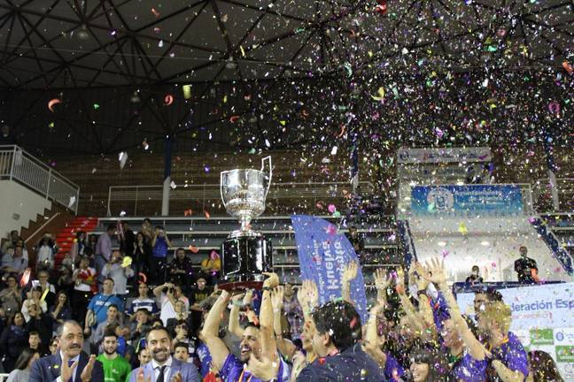 Fiel a la tradición, el capitán del Recre IES La Orden levantó al cielo del Andrés Estrada la Copa, que además de coronar a los onubenses como el mejor equipo de España, les abre de nuevo el camino hacia la Copa de Europa. Pero los jugadores no estaban solos. Junto a ellos, la afición. Una marea albiazul que inundó el pabellón en otra tarde para la historia.