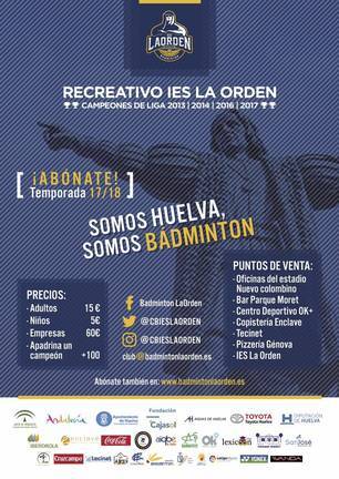 Vuelve el bádminton a Huelva. El Recreativo IES La Orden ultima todos los preparativos de cara a la nueva temporada que dará comienzo en dos semanas. Y el primer paso es el lanzamiento de la campaña de abonados, bajo el lema 'Somos Huelva, Somos Bádminton'.