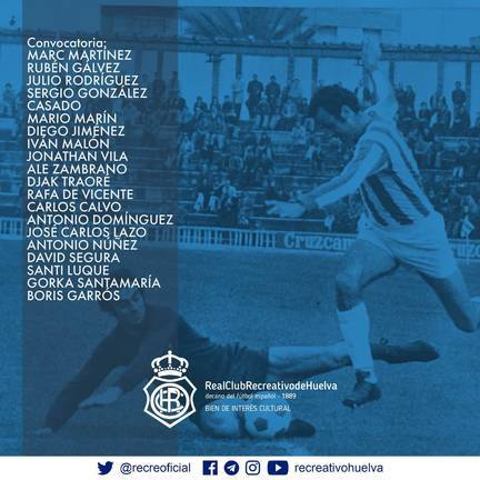 Por lo demás, el técnico albiazul lamenta la baja de Nacho Monsalve y ha citado a los veinte futbolistas del primer plantel que tiene disponible, con la consabida excepción de Robles. En consecuencia, el preparador recreativista tendrá que realizar dos descartes en la previa del partido, pues la norma sólo permite siete jugadores en el banquillo.