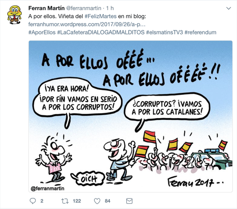 Otros usuarios han utilizado el humor para expresar su malestar como el viñetista @ferranmartin quien piensa que a por quien se debería ir es "a por los corruptos".