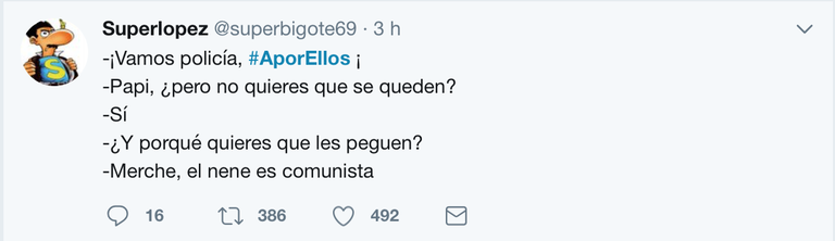 O el personaje de cómic "Superlopez" de otro usuario en twitter llamado @superbigote69 quien ha conseguido más de 300 retweets con este mensaje: