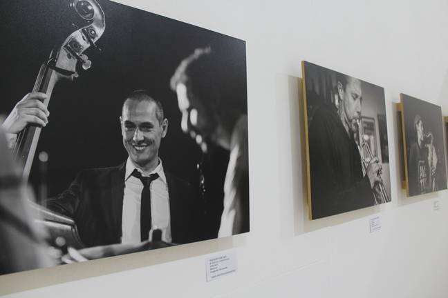 La exposición fotográfica '10 años de Jazzolontia, un sueño hecho realidad' podrá visitarse en el Teatro moguereño hasta el 5 de noviembre.