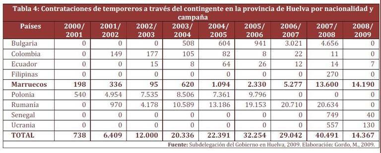 Desde hace una década se conoce. Un estudio de la profesora Mercedes Gordo Márquez para el Instituto de Desarrollo Local del Grupo de Investigación de la Universidad de Huelva puso el dedo en la llaga: Los contratos en origen de temporada a las marroquinas: estrategia empresarial para sustituir a las trabajadoras del Este de Europa tras la incorporación de estos países a la UE.