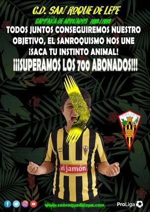 Va a más. La marea aurinegra progresa de manera incontenible, dispuesta a respaldar al San Roque de Lepe allá donde vaya. Así lo atestiguan los 700 abonados con los que cuenta el club al día de hoy, una cifra más que respetable para tratarse de un equipo de la Tercera División.