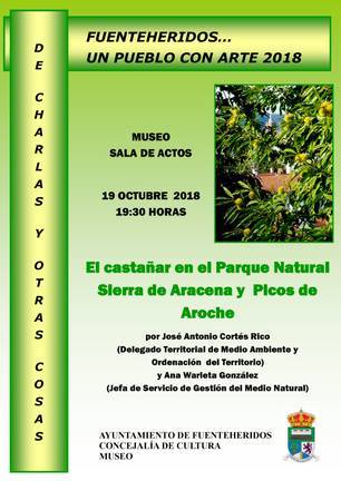Precisamente las charlas centrarán las otras dos citas restantes del próximo mes. El día 13 de octubre, José Luis Fernández, analista-predictor del Grupo de Predicción y Vigilancia de la AEMET en Sevilla, ofrecerá la conferencia ‘Meteorología y climatología en la Sierra de Aracena’. Mientras que el día 19, será José Antonio Cortés Rico, delegado territorial de Medio Ambiente y Ordenación del Territorio de la Junta de Andalucía, y Ana Warleta González, jefa de servicio de Gestión del Medio Natural en esta delegación, quienes hablen sobre ‘El castañar en el Parque Natural Sierra de Aracena y Picos de Aroche’.