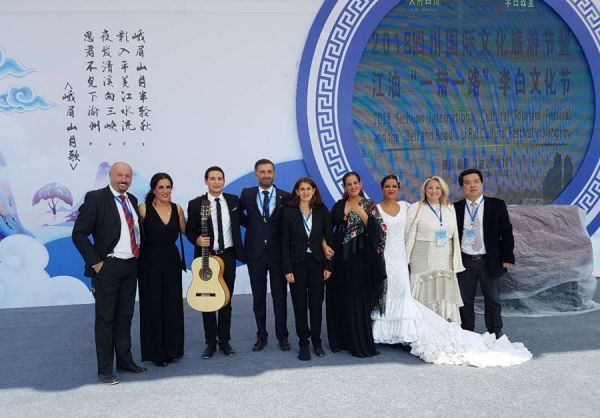 Junto a la delegación institucional también han viajado a Jiangyou invitados por la organización del festival que dirige Sun Zhigou. el guitarrista Alvaro Mora, el grupo Palodulce y la bailaora María Canea que ofrecieron un espectáculo flamenco que cautivó por su fuerza y su calidad al público chino, que despidió con sonoros aplausos a estos representantes de la cultura moguereña que también están contribuyendo a difundir la imagen de la ciudad en el país asiático.