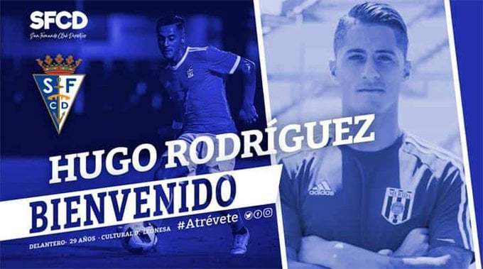 Formado en las canteras del Sevilla y Osasuna, Hugo Rodríguez (Jerez de la Frontera, 30/12/1989) ha militado en el Real Irún, La Hoya Lorca, Cádiz, Pontevedra, Mérida, Cartagena y Cultural Leonesa. El jerezano ha participado en 221 partidos y marcado 43 tantos en Segunda B.