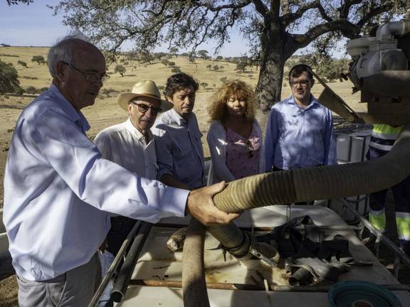 Después se ha abastecido a la finca 'La Morena' de Cabezas Rubias, cuyo ganadero Juan Francisco Valladares ha recibido más de 3.000 litros de agua para dar de beber a sus ovejas durante una semana.
