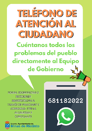 Los vecinos de Minas de Riotinto tienen desde este jueves línea directa para comunicarse con los miembros del Equipo de Gobierno. Un número de teléfono a su disposición para comunicar sugerencias, dudas o peticiones de cualquier índole que conciernan al municipio.