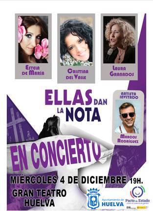 El Gran Teatro de Huelva acogerá el próximo 4 de diciembre a las 19.00 horas el espectáculo musical protagonizado por ‘Ellas dan la nota’. Un concierto de mujeres artistas que se enmarca dentro de las actividades organizadas por la concejalía de Políticas Sociales e Igualdad del Ayuntamiento de Huelva para conmemorar el 25 de noviembre y que, por tanto, tiene como objetivo seguir avanzando en la lucha contra la violencia de género.