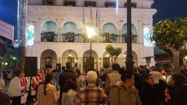 Este jueves 5 de diciembre, en la plaza de España, a las 18 h., habrá una Zambomba a cargo del Coro de Nuestra Señora del Rocío de La Palma del Condado, Coro Ntra. Sra. del Valle y el Coro Las Vecinas. El reparto de vino dulce y mantecados animará a los asistentes antes de asistir al encendido del alumbrado navideño a las 19:30 horas.