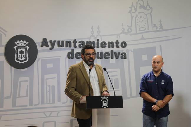 El concejal de Movilidad y Seguridad Ciudadana del Ayuntamiento de Huelva, Luis Albillo; y el presidente de la Asociación Bomberos Unidos Sin Fronteras (BUSF), Antonio Nogales, han dado a conocer esta mañana en rueda de prensa el plan de trabajo puesto en marcha por el Consistorio para la elaboración de un Plan de Contingencia Municipal contra Tsunamis, que se incorporará al Plan de Emergencias Local.