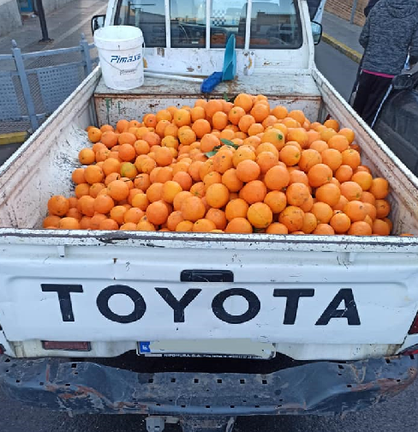 Tras comprobar que ambos individuos se encontraban junto a un turismo cargado de manera irregular de cítricos, ante la actitud de los implicados que presuntamente trataban de vender los productos perecederos sin ningún tipo de control sanitario y sin aportar ticket o factura que justifique su procedencia a un establecimiento de la localidad, el agente solicitó refuerzo a las demás patrullas de servicio.
