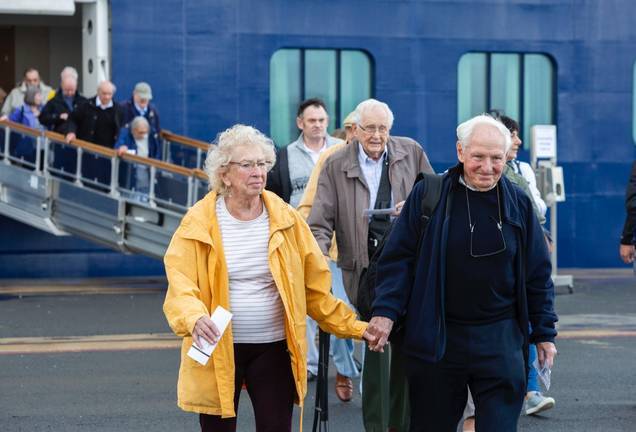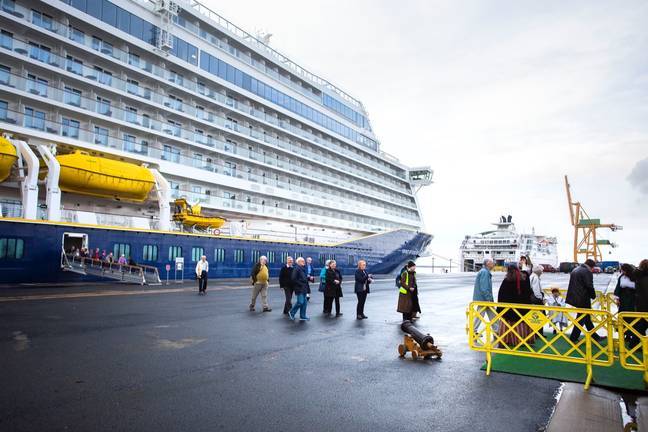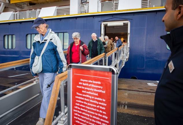 En la mañana de este sábado, el muelle Sur del puerto de Huelva ha acogido el desembarco del buque de cruceros 'Ms Spirit of Discovery', que ha atracado con sus 889 cruceristas, en su mayoría de nacionalidad británica, y una tripulación de 511 personas.