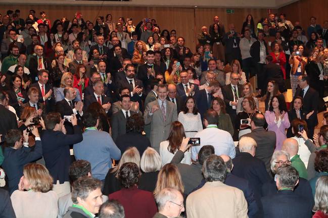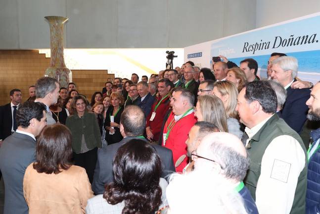 Recibidos con "¡Un viva el Rey!" han entrado a la sala para inaugurar este congreso que ha arrancado con una mesa redonda sobre 'Los 50 años de experiencia para afrontar el futuro de Doñana', en la que han participado el presidente del Consejo de Participación del Espacio Natural de Doñana, Miguel Delibes; el director de Medio Ambiente de la Comisión Europea, Daniel Calleja, y Metchild Rössler, directora del Centro de Patrimonio Mundial de la Unesco.