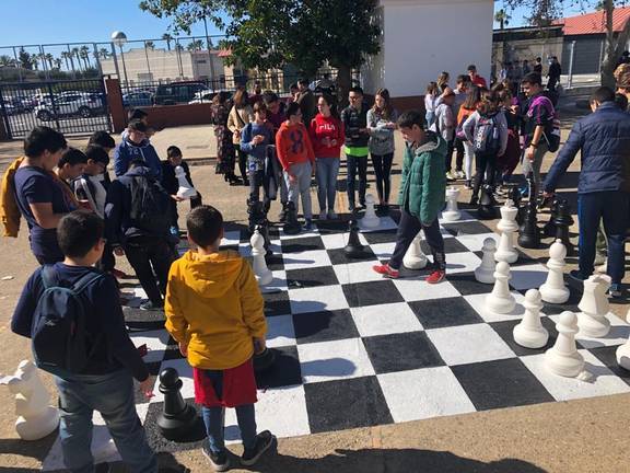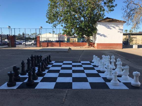El IES Odiel de Gibraleón fomenta la práctica de este deporte adquiriendo un juego completo de piezas gigantes para el alumnado