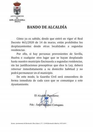 Poco a poco el virus infecta la tranquila vida de los pueblos, pequeños, medianos y grandes. Da igual. La lista se amplía cada día que pasa: Punta Umbría, Almonte, Bollullos, San Bartolomé, Riotinto, Nerva, Cumbres Mayores, Cumbres de San Bartolomé, Santa Bárbara de Casa, Trigueros....