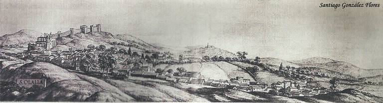 La imagen más antigua y destacada es la reproducción de un grabado con el castillo y el pueblo de Santa Olalla que, según el investigador Santiago González, fue editado en Venecia en el siglo XVII y posteriormente reeditado a mediados del siglo XIX.