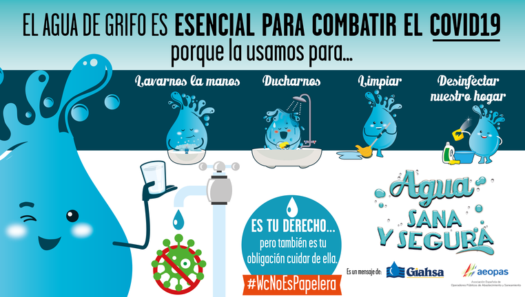 Los atascos en la red de saneamiento, al afectar al ciclo integral del agua, ponen en serio peligro la salubridad de un recurso que en estos momentos es más esencial que nunca, ya que el agua del grifo es determinante para combatir el Covid-19 y preservar la higiene general, la de nuestras manos, la de la ropa, la vajilla y el hogar. Además, hay que recordar que no existen las toallitas húmedas biodegradables, y las que están así etiquetadas no lo son de manera oficial y pueden inducir al engaño. Estos residuos están compuestos de microfibras y microplásticos que pueden permanecer hasta un mes en el agua sin degradarse