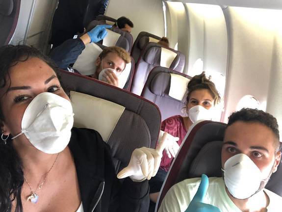 Después de muchos intentos, el ex alcalde de Ayamonte Alberto Fernández les consiguió un vuelo en el primer avión con pasajeros para España, algo por lo que José y sus compañeros están muy agradecidos. Fue el 25 de marzo y hasta que no estuvieron volando no se creyeron que verdaderamente volvían a casa porque las propias azafatas les advirtieron que el vuelo podía cancelarse en el último minuto.