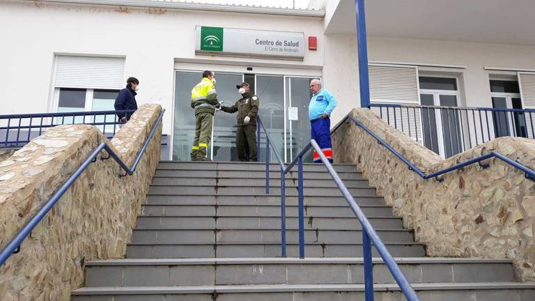 El dispositivo para la Prevención y Extinción de Incendios Forestales también ha estado en la mañana de este jueves en El Cerro del Andévalo, inspeccionando el centro de salud y el cuartel de la Guardia Civil, antes de llevar a cabo las tareas de desinfección pertinentes.
