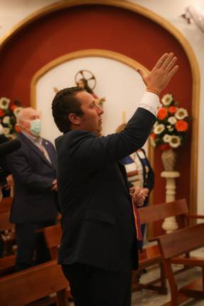 El primer día de triduo terminó con el canto de la Salve y los vivas de José Antonio Ortiz e Inocencio Forcén, a Nuestra Madre del Rocío, la Blanca Paloma, la Reina de las Marismas, la Patrona de Almonte, el Pastorcito Divino, la Hermandad de Emigrantes y al hermano mayor.