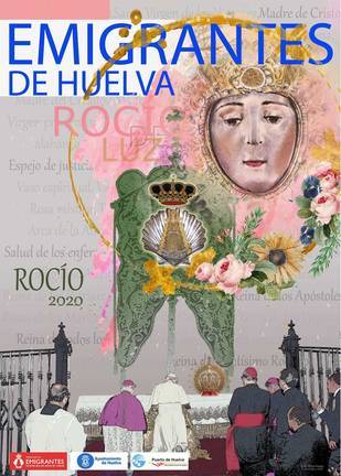 “El cartel está realizado en composición fotográfica con tratamiento digital, utilizando diferentes formatos, trazos y formas”, como ha explicado José María Palma. El mismo, ha manifestado su autor, “recuerda la visita que el Papa Juan Pablo II, hoy Santo por la gracia de Dios, realizara en 1993 al santuario de la Santísima Virgen del Rocío. En la escena contemplamos la imagen de San Juan Pablo II arrodillado junto al pueblo de Huelva representado en el clero diocesano y fieles, portando uno de ellos la medalla de la hermandad en su mano. San Juan Pablo II reza las letanías del Santo Rosario, que se pierden en el fondo de la escena, frente al Simpecado de la Hermandad de Emigrantes que se deja averiguar en su silueta resaltando especialmente la Concha Peregrina, símbolo y emblema de esta hermandad”.