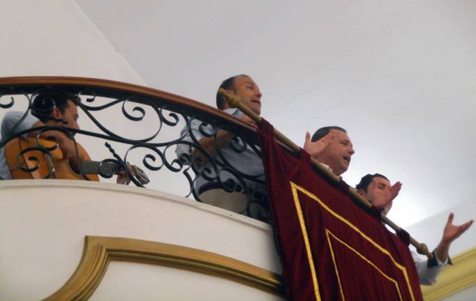 Otro de esos pellizcos que se han vivido en la capilla de la casa de hermandad ha sido cuando el hermano mayor, entre lágrimas, cantaba ‘Salte fuera del camino y contempla el Simpecao’.