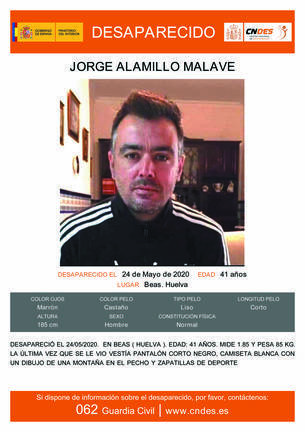 Según han informado familiares y los ayuntamientos de Lucena del Puerto y Bonares, varios testigos han afirmado haber visto al desaparecido Jorge Alamillo, vecino de Valverde en búsqueda desde el domingo, deambulando por los parajes cercanos a sus términos municipales.