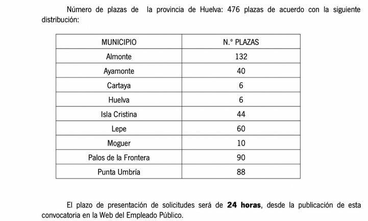 La Junta de Andalucía ha hecho pública la convocatoria de empleo para la provincia de Huelva con motivo del plan 'playas seguras 2020'. Dentro de esta oferta de empleo se encuentras distintas categorías como conserje, expendedor, ordenanza, telefonista y vigilante. En total se llevarán a cabo 476 contrataciones con el fin de facilitar el cumplimiento de las condiciones para el uso de las playas y el adecuado desarrollo y ejecución del plan de contingencia ante el COVID-19.