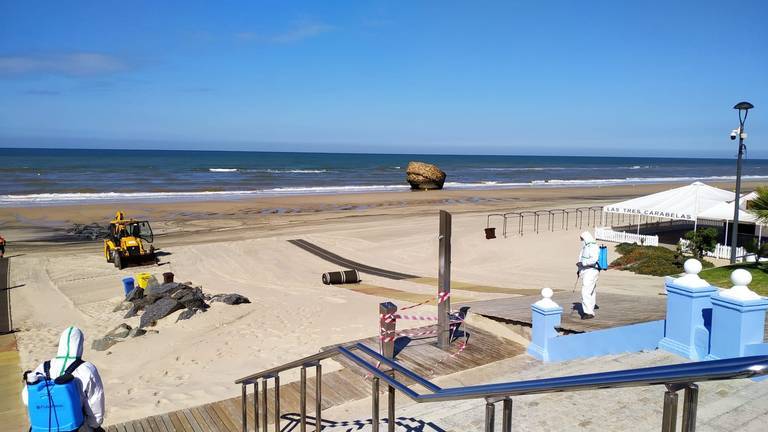 El trabajo diario en las playas de Isla Cristina se está intensificando para poder garantizar las medidas de seguridad e higiene a todos los visitantes de sus playas. Desde el propio consistorio se ha hecho hincapié en la responsabilidad de los ciudadanos para cumplir los dos metros de distancia entre personas, y seguir las recomendaciones que se instalarán en cada acceso de las distintas playas; así como de los agentes de seguridad.