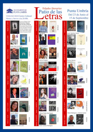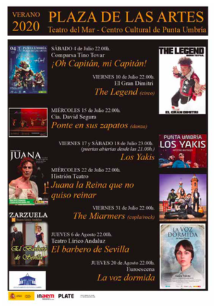 En este especial año 2020, el Ayuntamiento de Punta Umbría sigue apostando por el entretenimiento, el ocio y la cultura adaptándose a la situación derivada del coronavirus, programando 40 actividades literarias, expositivas y teatrales que se desarrollarán durante los meses de julio, agosto y septiembre. “Un programa acorde con las circunstancias”, ha indicado el concejal delegado de Cultura, Luis Manuel Alfonso, “que recupera la actividad cultural en el pueblo tras el parón obligado por la pandemia, prestando un buen servicio a los vecinos y cumpliendo con todas las medidas de seguridad y salud”.