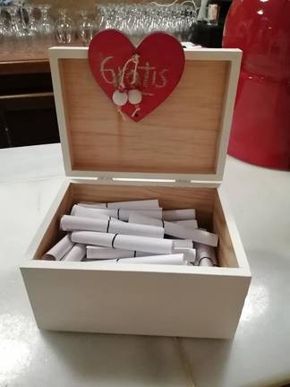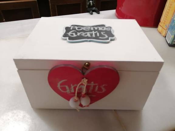 Para exponer la poesía al público se ha realizado artesanalmente un distribuidor con cinco salidas correspondientes a los diferentes tipos de poemas seleccionados que se coloca en un lugar público, como puede ser el banco de una plaza, una pared, escalones, etc. al alcance del público que transite por la calle. Un dibujo relacionado con los emoji difundidos por las nuevas tecnologías marca icónicamente el contenido en el frontal del expendedor. Los poemas van envueltos en una pequeña cajita regalo que el lector coge libremente y sin cargos y de la que puede disponer como quiera (quedársela para sí mismo, regalarla…).“Hemos realizado en esta ocasión una selección de 60 poemas (hasta cierto punto una pequeña antología poética) que recoge autores ya clásicos y universalmente reconocidos como Borges o Neruda, otros menos conocidos, como Valente o Mariano Roldán, populares como Juan Ramón, Lorca, Cernuda o Buesa y otros bastante desconocidos (por ahora). Hemos intentado dar una presencia especial a la mujer: Ana Rosetti, Pilar Quirosa, Rosana Estrada, Alfonsina Storni, Ernestina de Champourcin… y que se han agrupado en cinco secciones como se sugiere en el frontal del distribuidor: poemas de amor (conversos), de desamor (reversos), poemas eróticos (perversos), tristes (inversos) y algunas propuestas más generales que encierran en sí mismas otros universos”, explica Riaño.