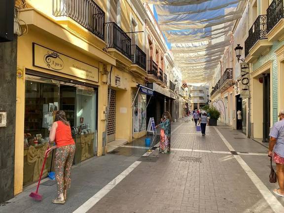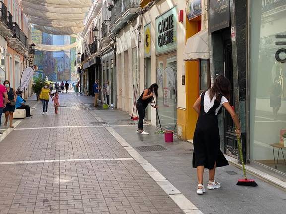 Los comerciantes de la Calle Las Bocas se convierten en personal de limpieza ante la dejadez del Ayuntamiento