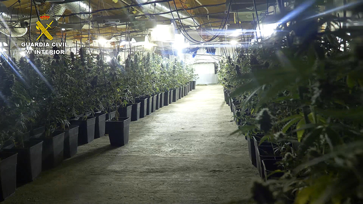 Una vez en el interior se pudo observar numerosos maceteros que contenían las plantas de cannabis, así como unos focos caloríficos en funcionamiento sobre ellas, localizándose y aprehendiéndose un total de 1.442 plantas de marihuana.