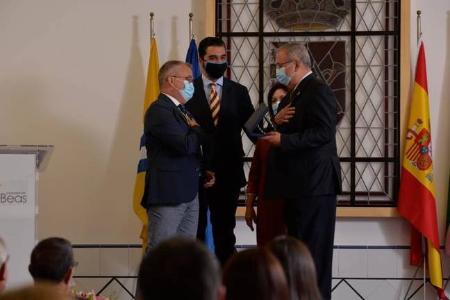 El pasado sábado día 17 de octubre, con todos los honores, recibieron el las distintas personas homenajeadas la medalla del Municipio de Beas, en un acto brillante, cuidado hasta el más mínimo detalle, sencillo y emotivo, y muy reducido en cuanto al aforo por las actuales circunstancias. Al acto además de las autoridades locales y las familias de los homenajeados, también asistió el Presidente de la Diputación de Huelva Ignacio Caraballo Romero.