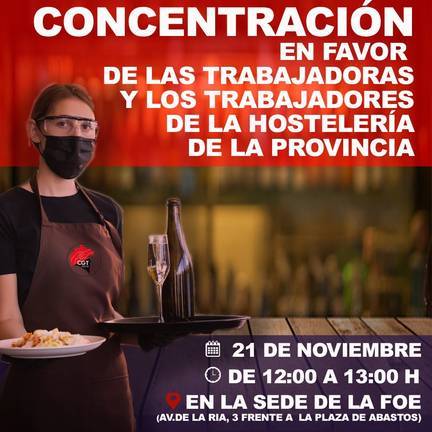 En el momento actual que se está viviendo por la crisis sanitaria en todos los sectores económicos, uno de los más afectados es, sin duda alguna, el sector de la hostelería. Desde el sindicato CGT Huelva se ha convocado hoy una concentración en apoyo a los trabajadores y trabajadoras del sector de la hostelería, para reivindicar que los problemas de precariedad que tienen que soportar, no han sido motivados solo por la aparición del COVID 19, sino que ya existían antes, aunque se hayan agravado por el cierre de empresas en la actualidad.