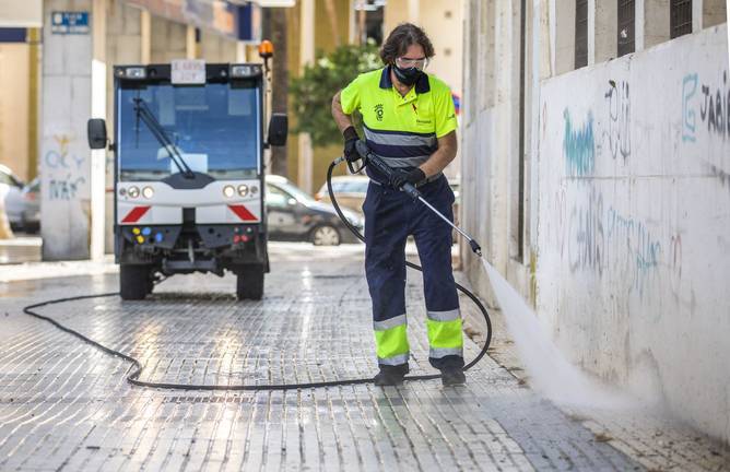 Los operarios del Ayuntamiento limpian a fondo barrio a barrio de la capital
