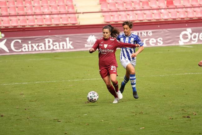 Tras un primer tiempo sin goles, el fútbol se animó en Las Gaunas con el tanto de Dany Helena. La brasileña remató a la red con un certero cabezazo a la salida de un córner botado por Claire Falknor. Restaban veinte minutos y el combinado blanquiazul supo sufrir y defenderse. Benítez no hizo cambios para perder tiempo y en el descuento, Inés Altamira nivelaba el duelo con un afortunado centro-chut.