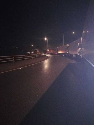 De la empresa onubense Transonuba (con sede en Niebla) se encuentran 'atrapados' casi un centenar de camiones según han informado algunos de los transportistas que se encuentran en Reino Unido. Diariodehuelva.es ha hablado con Moisés Esperanza Rodríguez, un camionero onubense que se ha llevado "tres días tirado en una cuneta, junto a mi compañero Rafael Heredia Aguilera, haciendo nuestras necesidades de noche para que nadie nos vea en medio de la nada. Y sin poder ducharnos hasta justo esta mañana que gracias a mi compañero Benito hemos podido llegar a un área de servicio".