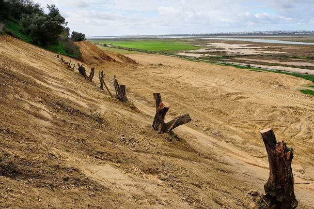 Ecologistas en Acción ha presentado denuncia ante la Consejería de Agricultura, Ganadería, Pesca y Desarrollo Sostenible en Huelva, tras la reciente detección de un importante destrozo y desmonte en los escarpes del Tinto, en la zona comprendida entre el Muelle de la Ribera y la depuradora de aguas residuales de Moguer.