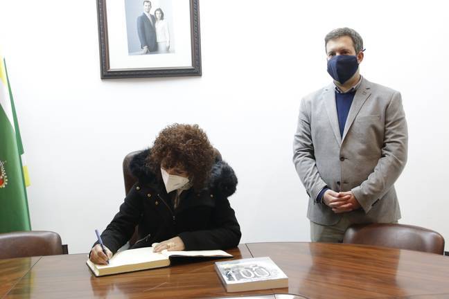 En el acto, centrado en la conferencia impartida por la propia Calvo “San Sebastián, proceso de restauración”, ha participado la presidenta de la Diputación de Huelva, María Eugenia Limón, junto al alcalde de la localidad, Enrique Garzón, el párroco de la iglesia, resto de autoridades y vecinos y vecinas de Higuera.