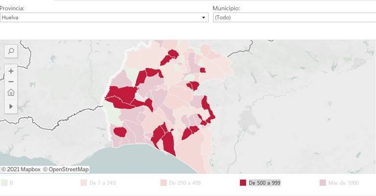Así las cosas, desde el próximo miércoles, estarán cerrados perimetralmente 20 municipios de la provincia de Huelva (aquellos con una tasa de contagios de entre 500 y 1.000 casos por 100.000 habitantes/14DIA)