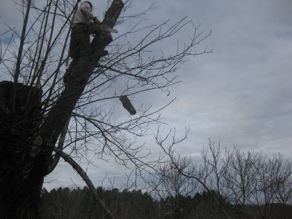 Los trabajos se desarrollan en unas condiciones duras y peligrosas. El frío y el hielo provocan riesgos de accidente que se suman a la altura de algunas ramas que hay que podar. Todo ello refuerza la valía de estas tareas titánicas.
