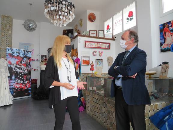 Como muestra del interés por conocer aquellos artesanos y artesanas inscritas recientemente en el Registro de Artesanos de Andalucía, así como a las asociaciones y empresas igualmente inscritas, el delegado territorial de Empleo, Formación, Trabajo Autónomo, Transformación Económica, Industria, conocimiento y Universidades en Huelva, Antonio Augustín, ha visitado este jueves el taller de Ana Bella Cortés Oria, en Lepe, y a la artesana ayamontina Maria del Carmen Vega, Premio Andaluz a la Artesanía de Andalucía 2021.