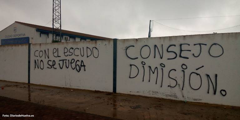 Esta mañana, el muro exterior de la Ciudad Deportiva del Decano del Fútbol Español ha aparecido con una pintada en la que se solicita la dimisión del Consejo de Administración que ahora encabeza el nuevo consejero delegado Carlos Hita. Y los ánimos de los seguidores albiazules no se han calmado con las explicaciones aportadas en el día de hoy por la directiva del Recre.