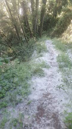 Como cada primavera, un fenómeno peculiar tiñe los suelos de los campos serranos. Se trata de la original ‘nevada’ producida por los vilanos de los chopos, unas pelusas que caen de especies arbóreas ubicadas en determinados rincones del Parque Natural Sierra de Aracena y Picos de Aroche.