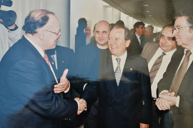 Quedo con nuestro invitado en la calle Marina, nos sentamos en un banco público y comenzamos a charlar de lo divino y lo humano, recordando que ha sido el único presidente del Decano que llegó a tal posición compitiendo en unas elecciones, concretamente con Manolo Muñoz.