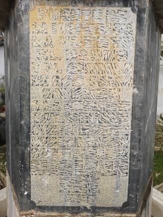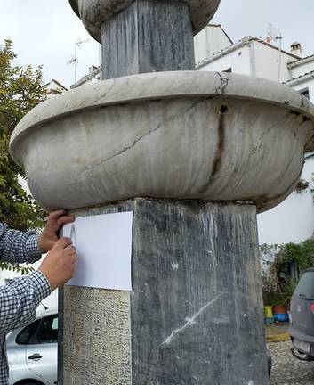 Así se ha mantenido hasta hace unos meses, en que en el grupo de whatsapp ‘Eco Cachonero’ se suscitó el interés por descifrar las letras ocultadas. Fueron varias las aportaciones al respecto y se recuperó una parte del contenido de esa especie de lápida. Incluso se detectó la empresa que la instaló en los años 30, que aún existe. Los técnicos de la Mármoles Sabán, ubicada en Fregenal de la Sierra, se desplazaron a Galaroza para intentar ayudar en el reto de descubrir el texto.