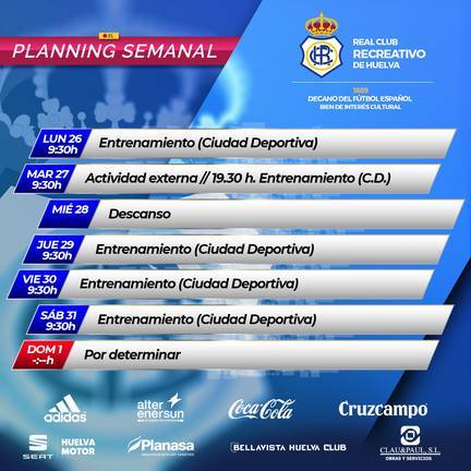 El 'planning' semanal incluye cuatro entrenamientos más y una jornada de descanso, que está programada para el miércoles. Desde los despachos del Nuevo Colombino se está barajando la posibilidad de jugar el domingo un segundo amistoso, tras la derrota del pasado sábado ante al Betis Deportivo. De momento, no hay rival, ni sede.